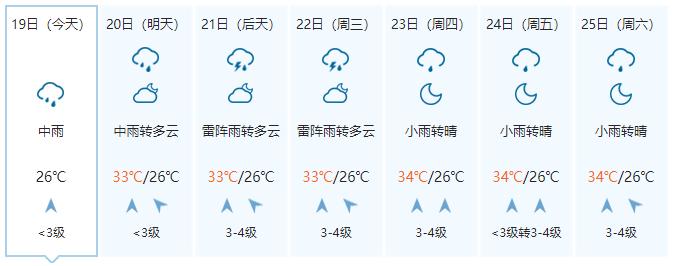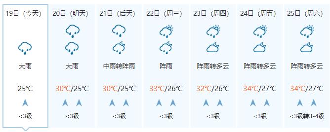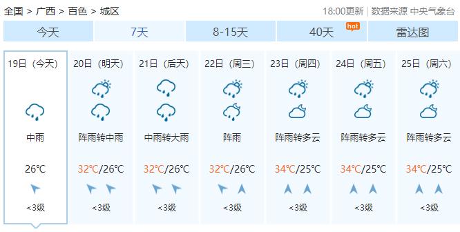 广西气象台19日17时发布预报: