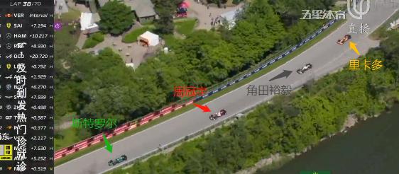 进入最后十圈的争夺!塞恩斯早已追近到维斯塔潘的DRS区中!!!第60圈,勒克莱尔在十号弯十分激进的走线超越奥康来到第五名!!!