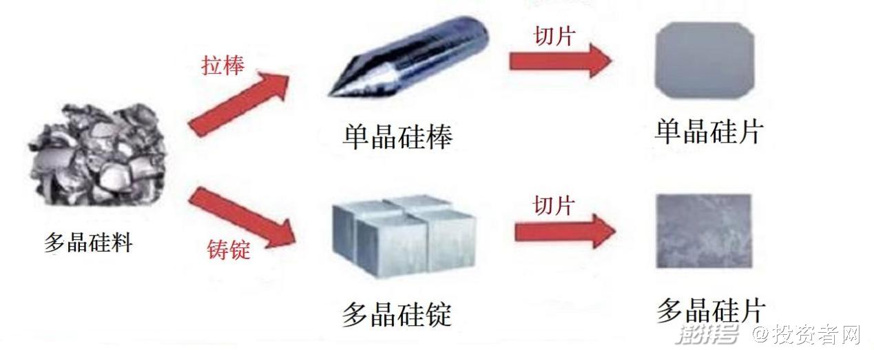 图表2:光伏单晶硅片/多晶硅片形成示意