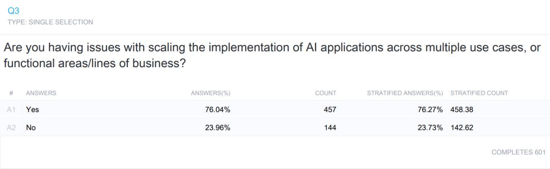 CognitiveScale 最近的调查数据发现,76% 受访者表示在扩展他们的人工智能工作方面遇到困难。