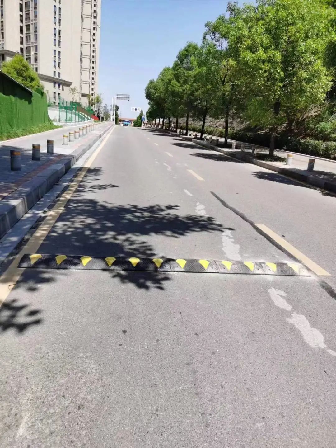 改进后道路恢复畅通,减速带为居民出行带来安全保证。为彻底解决这一问题,旭光村联系伍家交警大队在旭光路入口处安装了电子摄像头监测车辆违停问题,又联合区城管大队和区交警大队在两侧人行横道处每隔1.5米安装一块挡车石。同时,为满足道路两旁商户及附近居民的刚性停车需求,村委会利用“宜化巴黎香颂”小区附近闲置空地新建智能化露天停车场,新增车位40余个。