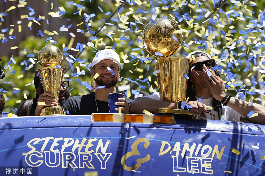 6月21日,本赛季NBA总冠军金州勇士队进行了冠军游行。