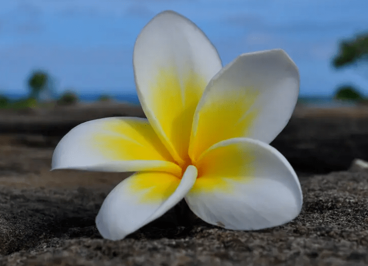 8年前的暑假,我到了印度尼西亚巴厘岛。一下飞机,看到满眼都是一种树,树上开着一种花——鸡蛋花。这种花,盛开时每朵有一个鸡蛋那么大,五片花瓣呈螺旋状依次排开,靠近花蕊的地方是鲜黄色的,向花瓣边沿延伸时逐渐变成乳白色。颜色外白里黄,活像一个鸡蛋,俗称“鸡蛋花”。