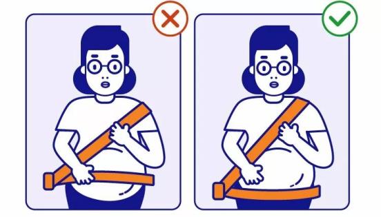 孕妇乘车时需要注意,系安全带时一定要避开肚子。