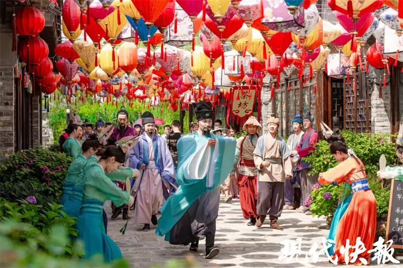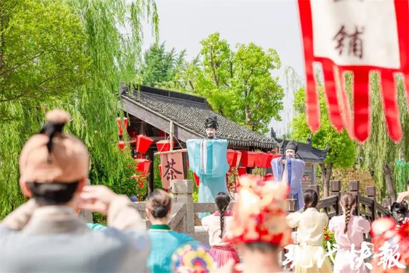 当天下午,现代快报记者来到晏溪河畔,盐工的号子声响起,一场好戏拉开序幕。《范仲淹》情境大戏正在此上演,吸引游人驻足观看。演出再现了范仲淹在西溪担任盐仓监时,修筑捍海堰,重振盐业,造福百姓的情形。互动式表演、生动有趣的台词,让大家跟着演员们穿越时空,身临其境体验范公的传奇故事。