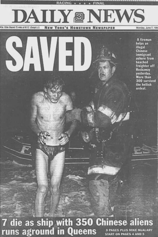 ● 美国媒体头条报道了金色冒险号事件在这种人间惨剧面前,民众的愤怒是难以平息的。在社会压力下,美国警方加紧了办案的速度,隐藏在幕后的蛇头也渐渐浮上了水面。