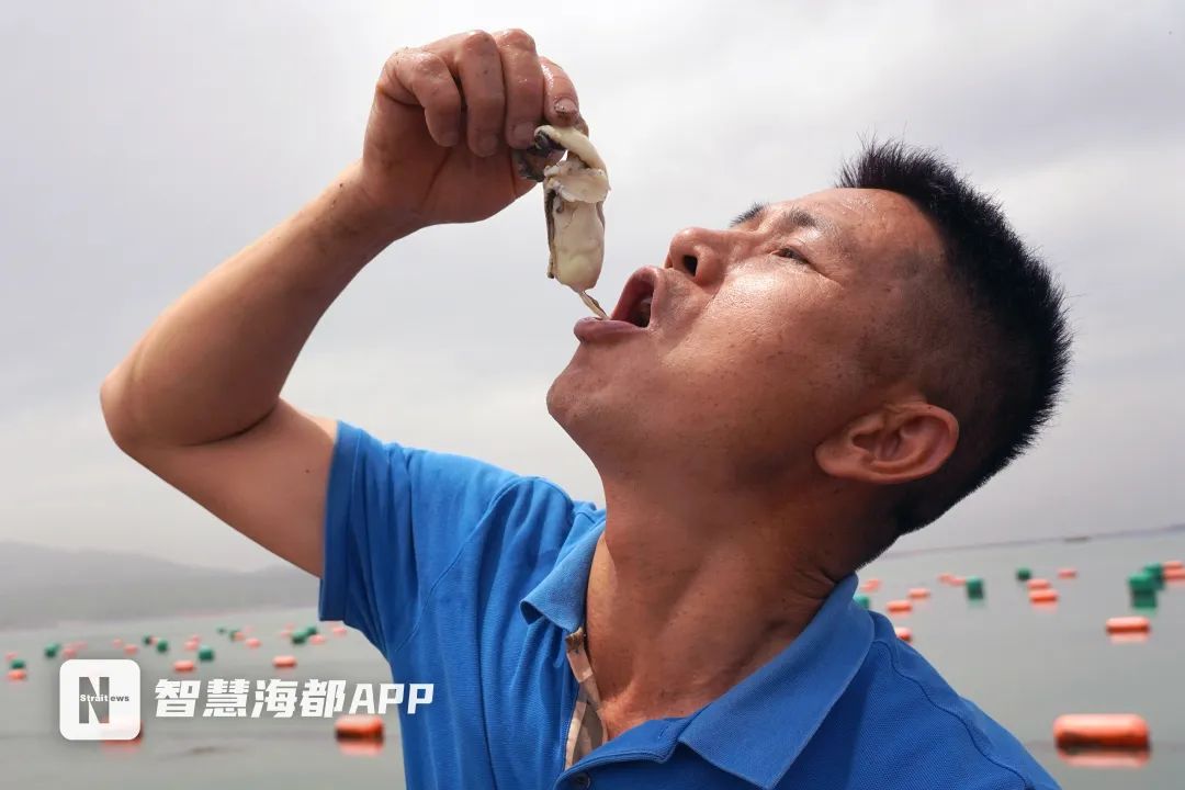 “最重的一颗能达到七八两,你用刀划开它的肚子,没有汁水流出,才是真正的生蚝,否则就属于普通小牡蛎或二倍体牡蛎。”今年51岁的林哲同养蚝已有33载,每年6月中旬至10月是丰收季。他随意打开几个生蚝,个个脂白如膏,筋肉可见,可以直接生吃。林哲同说,三倍体牡蛎不仅产量高,而且卖相好、品质好,是市场上的抢手货。
