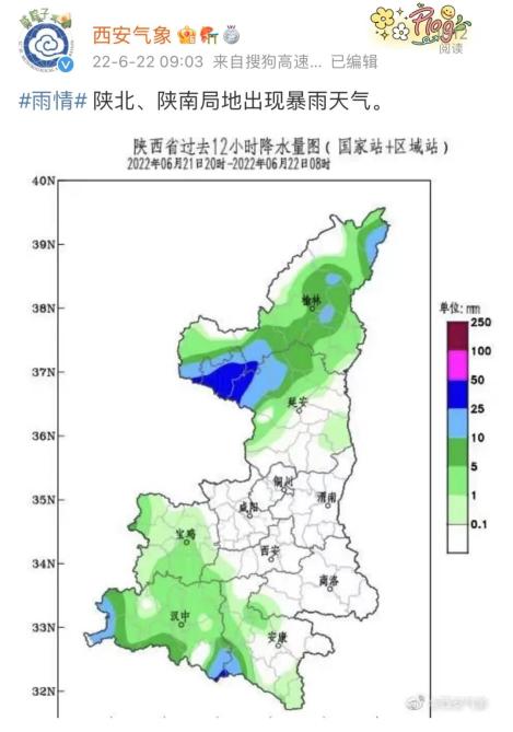 今天上午9时左右,@西安气象 发微博表示陕北、陕南局地已出现暴雨天气,而西安城区的主要降雨时段预计在14-20时之间。