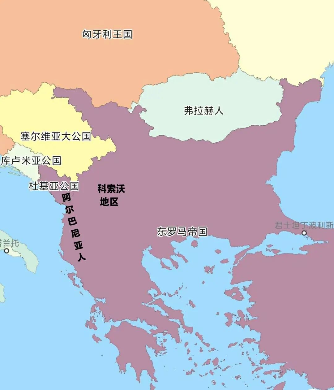 塞尔维亚人还南下扩张,征服了居住在巴尔干西部沿海地区的阿尔巴尼亚人,获得了出海口。