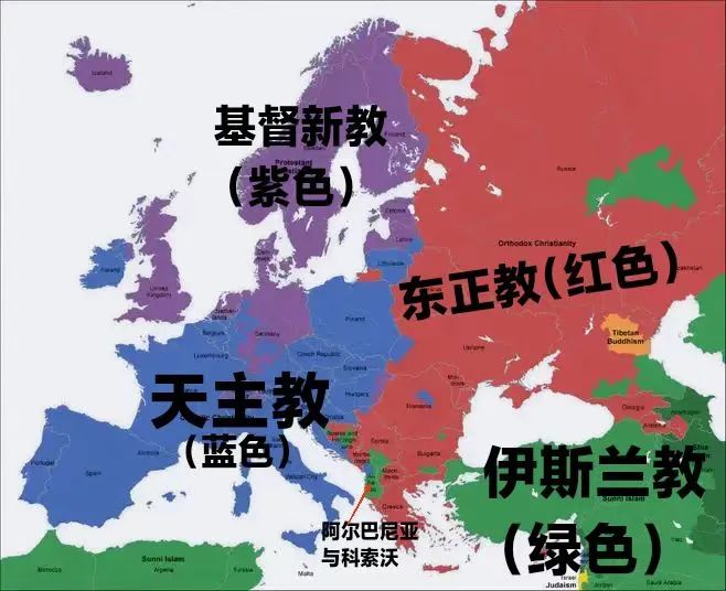 ▲欧洲宗教地图