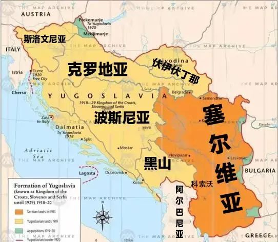 ▲一战后的南斯拉夫王国(米黄色为新兼并领土)