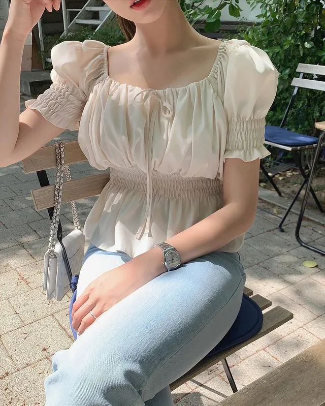 加上今年复古风猛吹,浪漫的法式上衣成了最好的选择。