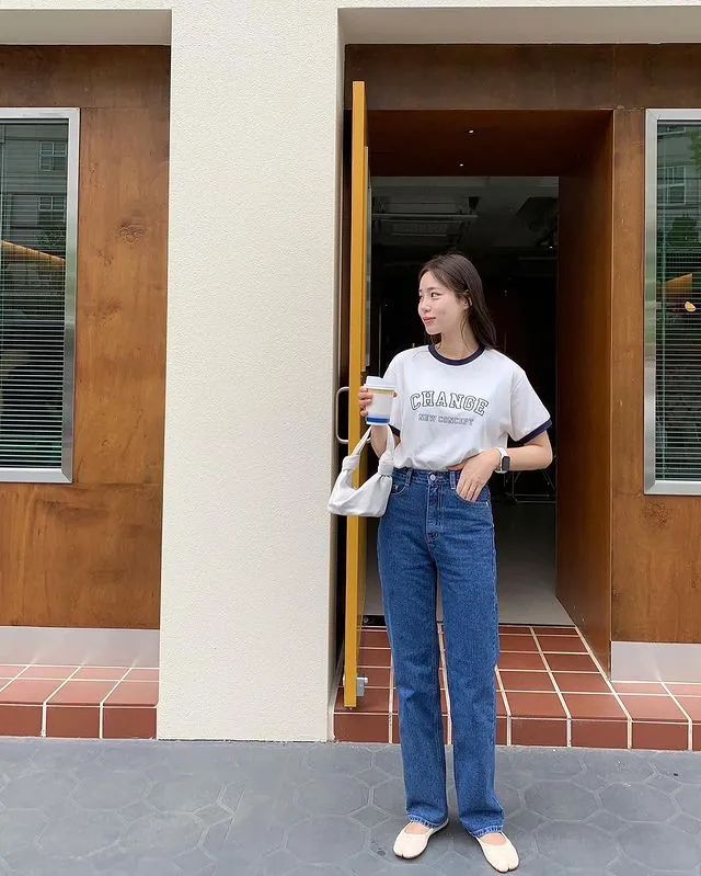 讲真,又有哪个夏天能离得开T恤这个万能经典单品呢?刚好,配上牛仔裤更适宜。解锁穿搭