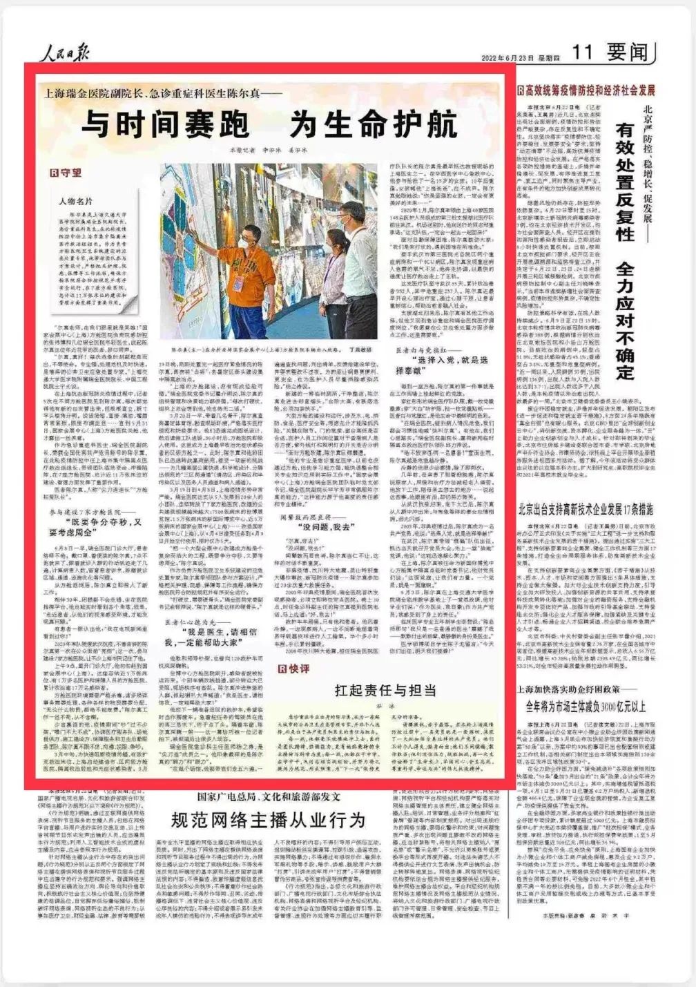 人民日报:上海瑞金医院副院长、急诊重症医生陈尔真——与时间赛跑,为生命护航