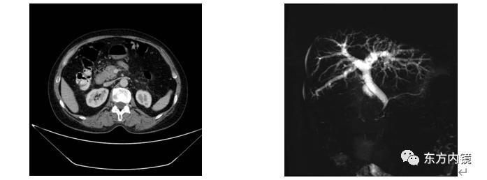 医院给她查了肝功能发现胆红素比正常升高了好几倍(85.5umol/L),肿瘤标志物CA-199明显升高(331.3ng/ml),进一步做CT发现胰腺头部略增大,隐约有异常回声占位,磁共振(MRCP)发现胆总管已经有轻度扩张。