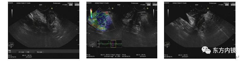 (超声内镜检查及穿刺图像)外科完善检查后没有发现远处转移,及时做了手术治疗,江阿姨恢复了1个月安全出院了,术后病理提示胰腺中分化导管腺癌。