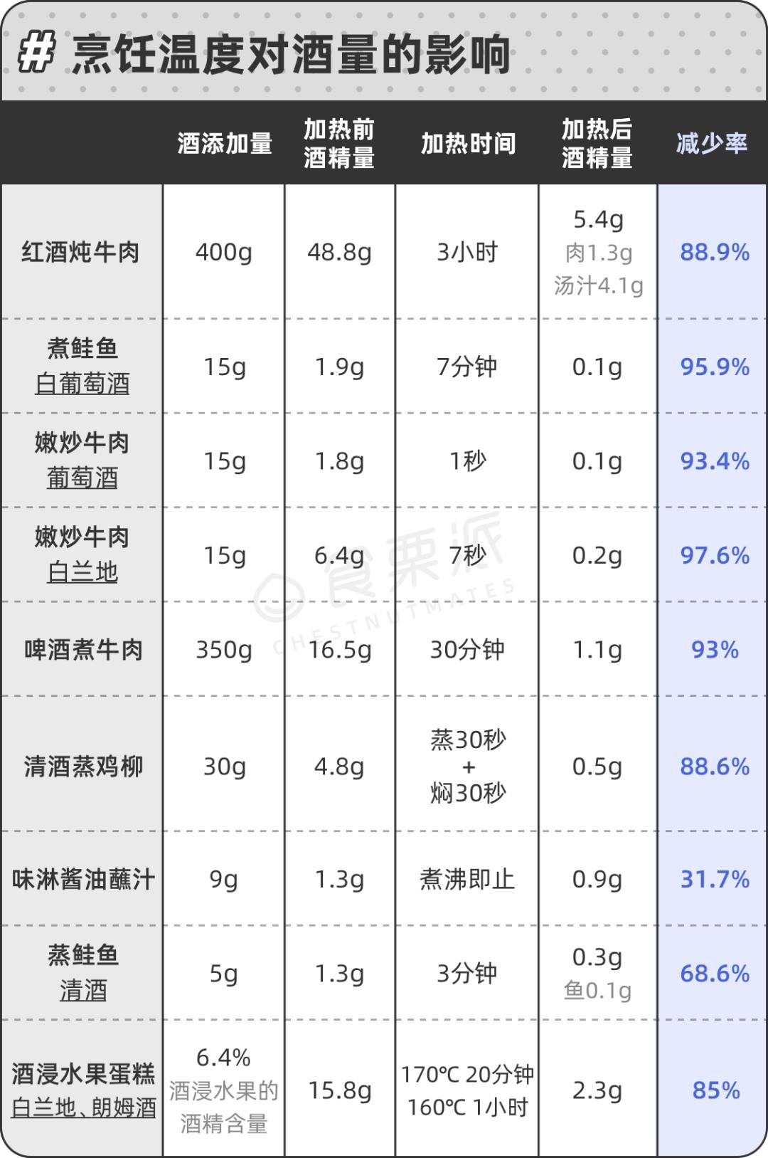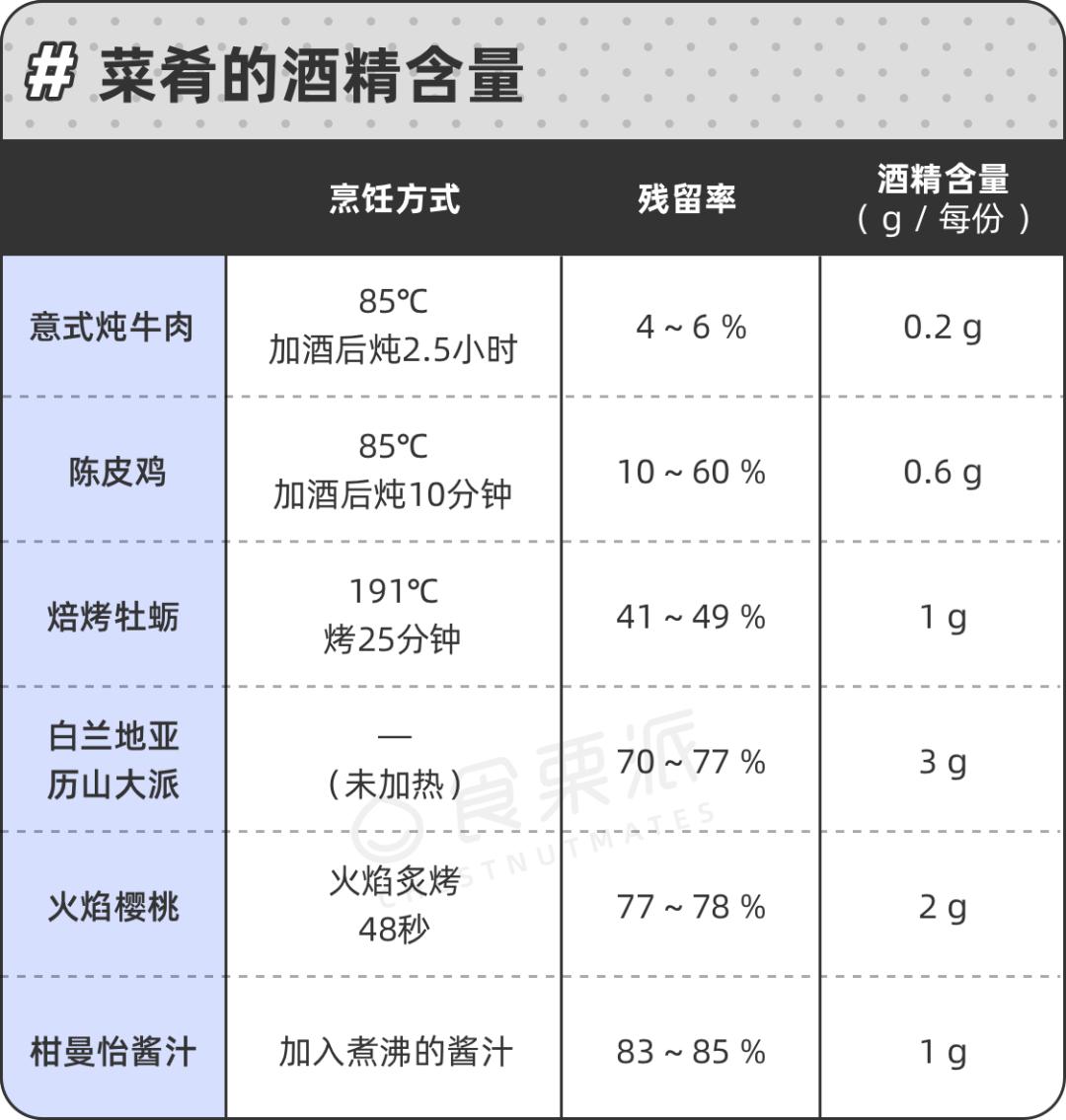 可以看到,需要长时间炖煮的菜品,原先加入的酒精还会残留5%左右