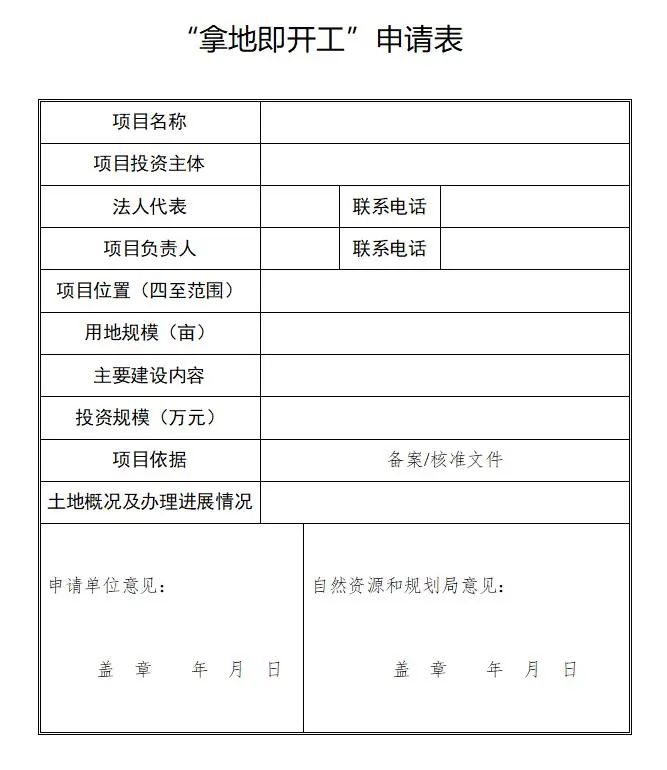 “拿地即开工”申请表