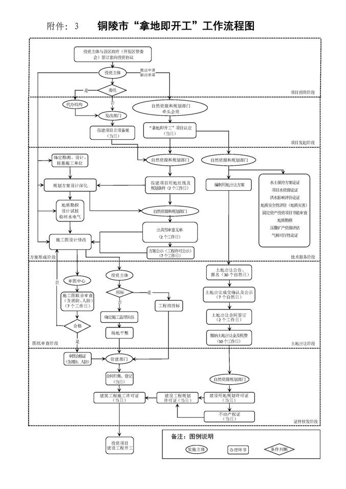 (三)启动土地报批。符合“拿地即开工”条件的项目,自然资源和规划部门迅速启动土地核查,初步确定项目用地红线,勘查地面附着物等现状情况,组织编制土地供应方案,报市政府批准。项目投资主体办理立项手续,启动环境影响评价、安全生产“三同时”评价等建设手续办理工作,相关手续办理在土地出让成交前完成。
