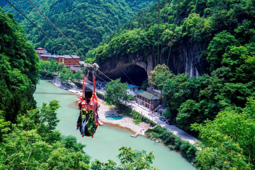 这里峡谷幽深,河水清澈,怪石嶙峋,奇峰突兀,林木葱茏,有3600余年历史的米仓古道横贯其中。128个溶洞、88条暗河,山涧断崖,尽是飞瀑流泉。著名景点有龙湖洞、狮子洞、黄龙洞、国画屏、金童山、玉女峰、中峰洞等300余处,参与体验性项目有十里峡谷漂流、峡谷溜索、绝壁电梯、飞拉达、游船等30余种。被中国工程院院士卢耀如荣赞为“中国溶洞博物馆,世界溶洞博览园”。
