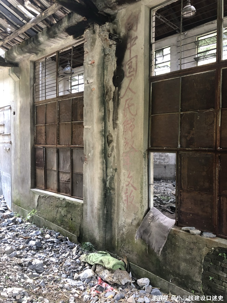 同样是为了身临其境获得历史感,我们于次日前往浙江临安县岛石镇仁里村。这里坐落着协作厂的遗址。协作厂原有的厂房、库房、大礼堂、宿舍楼,在协作厂搬离之后,并没有得到很好地利用。除了部分宿舍楼还有当地居民居住,保存尚好外,其他建筑多已残破不堪,还有一些厂房因为要退还为农地(当地可以因此从政府获得一些补贴款项),已被夷为平地,几乎看不出一点踪迹了。因为这些厂房年久失修,多是危房,只剩下铁将军把门。我们不能入内,只能在外面凭吊这些厂房的光辉岁月。