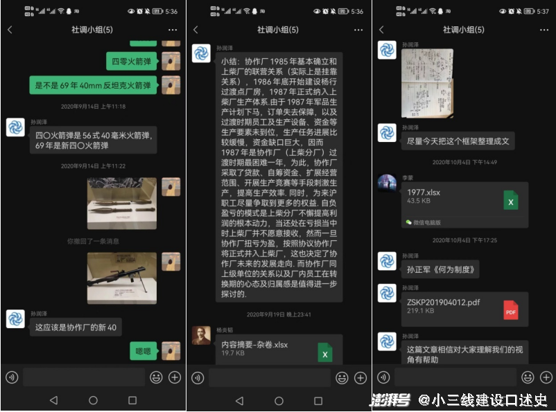 个人认为,我们进行了多次访谈,以及阅读不少档案和前人研究,其价值不仅仅在于明确我们的问题。说来惭愧,我们论文的定向是在整个实地考察之后。不容忽视的另一价值在于,为我们进入当时职工的生活,回到历史现场提供了一个渠道在这之前,我总有一个误解,认为共和国之开始,不过与祖父辈同期,所谓计划经济等特殊名词,我们虽未亲身经历,但也是耳濡目染,因此对我这样的共和国人而言,共和国史很好理解。事实并非如此,虽然共和国史不过七十余年,但沧海桑田,这七十年发生的变化之大,之多,之迅速,在历史上都不多见,几十年前的事件,其内在逻辑已并非我们轻易可以弄明白的。这就需要我们进入父辈、祖父辈的时代,妄加揣测,所谓“同情之理解”,应该多少也包含这一层意思。上学期开展的家史整理即是这样的一个契机,这次的小三线采访又是另一个宝贵机会,让我们真正触及到离我们不过一两代,但真正有着天壤之别的另一个时代。但这两次的采访,不过是很粗浅地初步涉及,在很多浅显的方面让我们有一个直观感受,全面、深入地了解,还需要在书斋中多啃几十本著作。