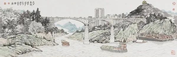 据了解,钟涛教授2015年受广西区党委统战部的选派,到武宣县挂职锻炼,担任县长助理,从此与武宣结缘。挂职期间,钟涛教授深入武宣各乡镇发现武宣的美,后来用了4年半的时间完成了这幅画卷。该画卷长195米、宽0.48米,水墨为主,略赋色彩。全卷题材分明,构图巧妙,衔接自然,通过“山水武宣”“庄园武宣”“峡谷武宣”“水上武宣”四大篇章,把武宣的一条条旅游线路和古往今来描绘了出来,汇成一曲清丽典雅的“水墨长歌”。