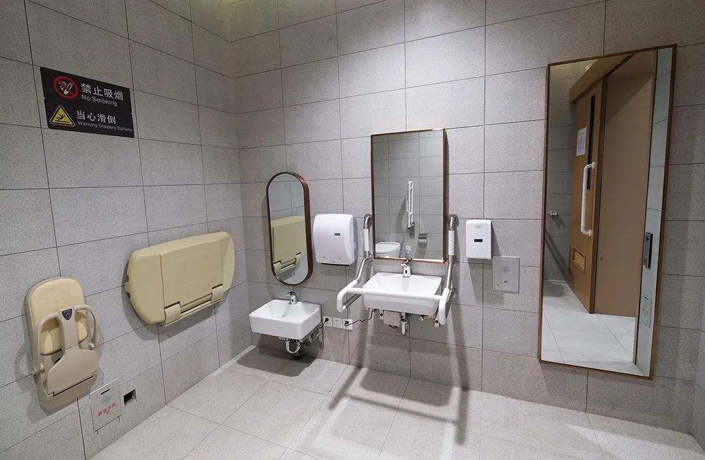 候车大厅内设置了多达23处的无障碍卫生间