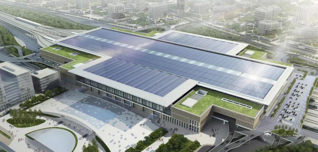 站房顶上还安装了6万多平方米的光伏发电板