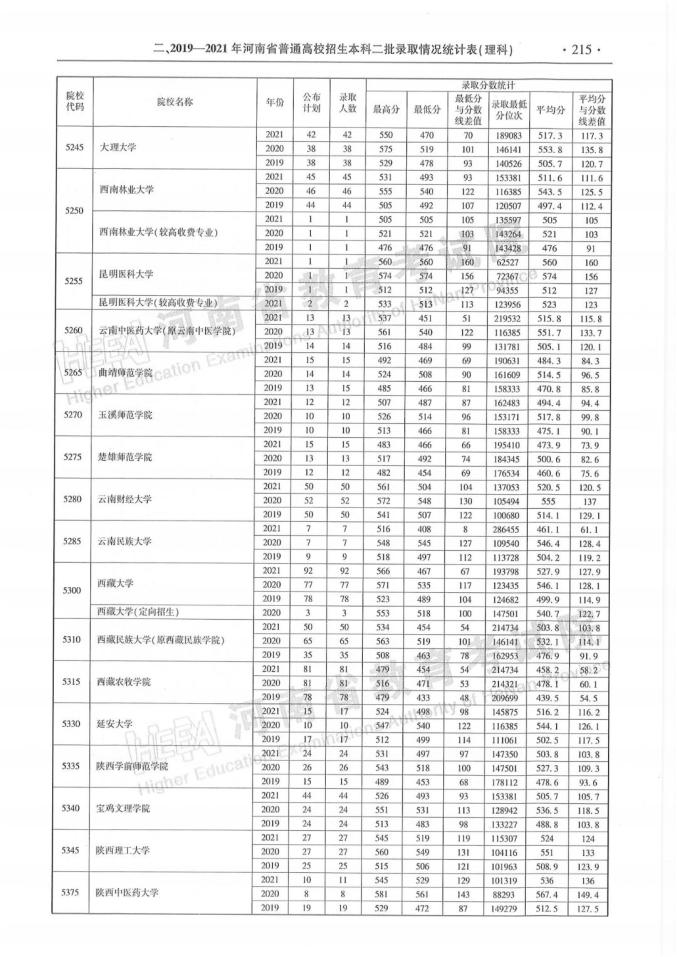 河南省近三年本科二批录取情况统计表