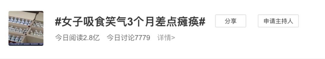 话题#女子吸食笑气3个月差点瘫痪#