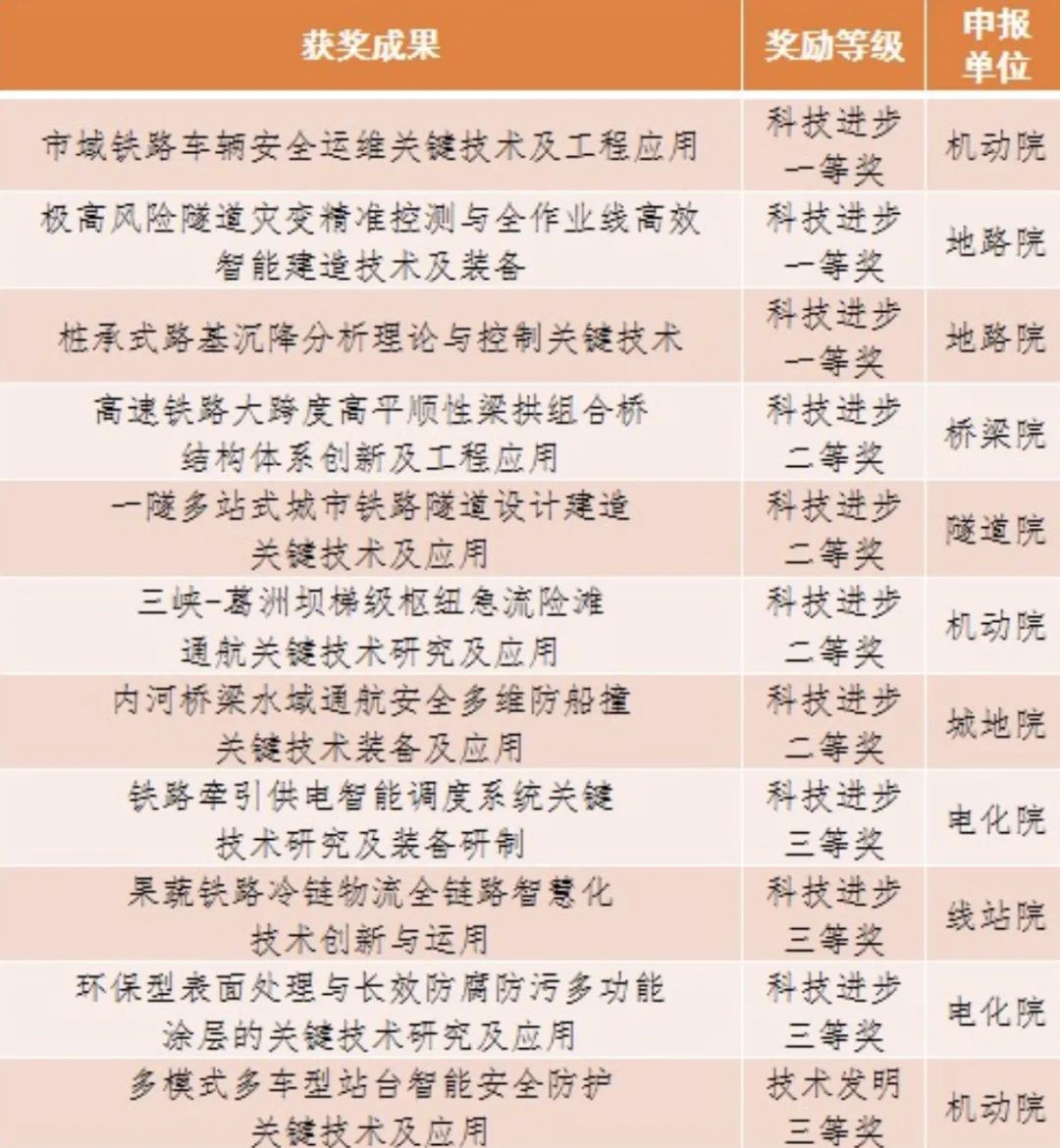 2021年铁四院获得各类科技奖38项,其中国家科技奖3项、省部级科技奖16项,充分展现了“科技四院”品牌形象,为全院高层次人才队伍建设、高质量发展提供了良好支撑。