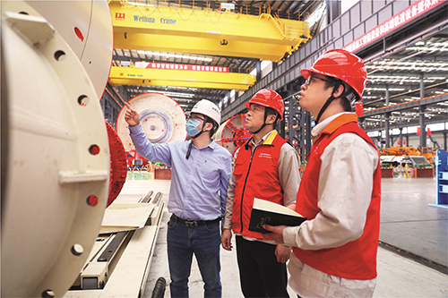 国网湖南长沙供电公司员工到企业车间开展用电服务。