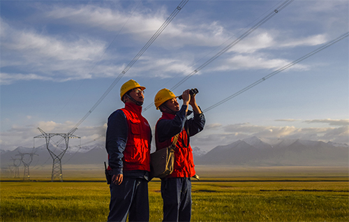 国网新疆阿克苏供电公司员工巡视750千伏伊库线。