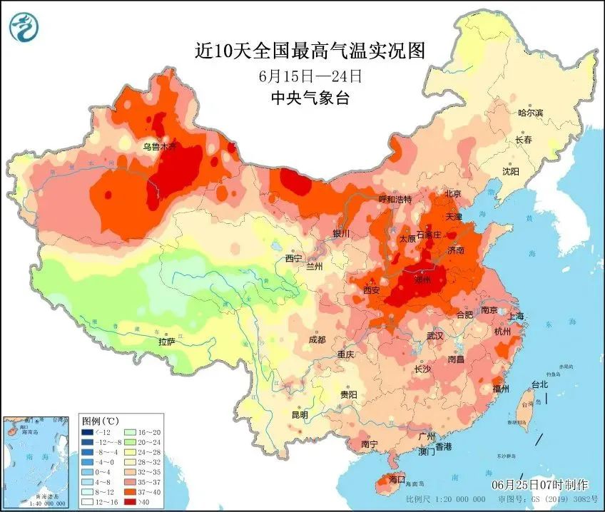 自6月15日以来,我国河南、山东、山西、河北等地出现较大范围持续高温天气,中央气象台连续11天发布高温预警。内蒙古、新疆、甘肃、宁夏、山东、山西、江苏等地有26个国家级气象站日最高气温突破当地6月历史极值。