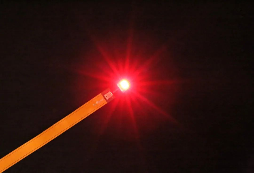 ▲红光芯片点亮实拍图5月7日,激光显示龙头企业光峰科技公布了首个PPI破万的商用AR光学模组。这款光学膜组能够在0.5立方厘米的体积内,拥有720分辨率,并且能够将功耗维持在200mW以下。