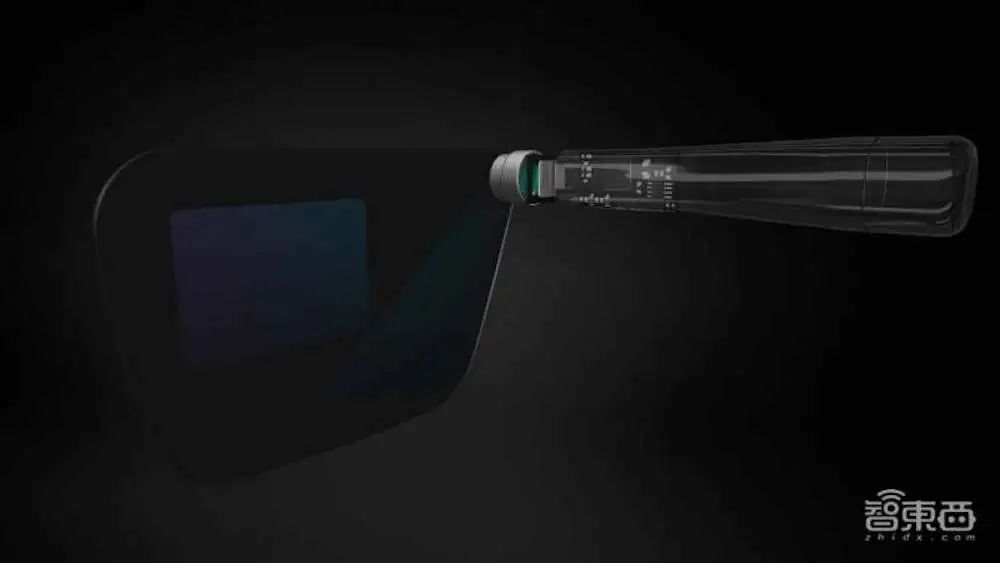 一些采用自由曲面Birdbath光学方案的AR眼镜常常采用的是像上图中微型显示器和光学模组的陈列方式。而一些采用衍射光波导的AR眼镜,其微型显示器可能暗藏在侧边的镜架里。