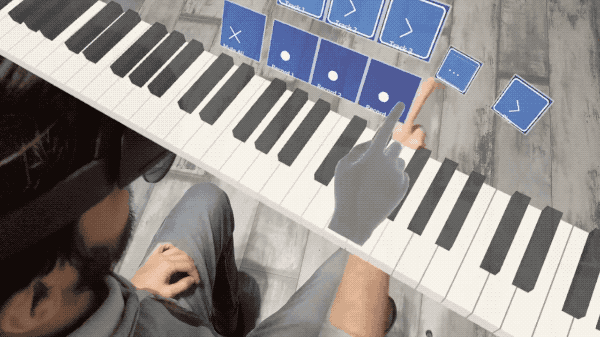 而在目前所有的音乐相关AR实践里,音乐教育是最值得期待的领域之一,AR很有可能给音乐教育带来颠覆性的教学方式。一家日本公司曾经开发了一种教学全息影像,用户借助AR眼镜可以在全息影像的陪伴和指导下学习钢琴。这就意味着,或许有一天,郎朗能以虚拟分身的方式来给普通人教琴。