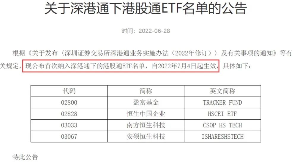 6月28日晚间,中国证券监督管理委员会、香港证券及期货事务监察委员会发布《联合公告》,官宣ETF纳入互联互通机制正式获批启动,互联互通下的ETF交易将于2022年7月4日即下周一开始。
