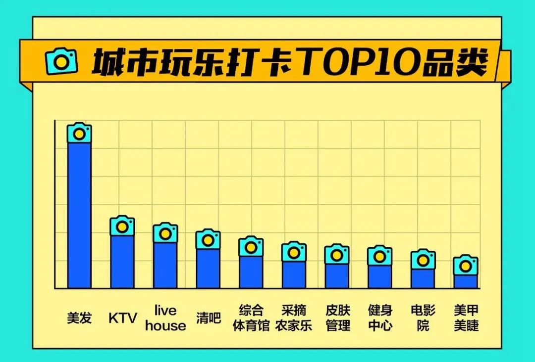 不过在“城市玩乐打卡TOP10品类”中,小吉对结果倒是有点惊讶,第一名遥遥领先的居然是……美发!