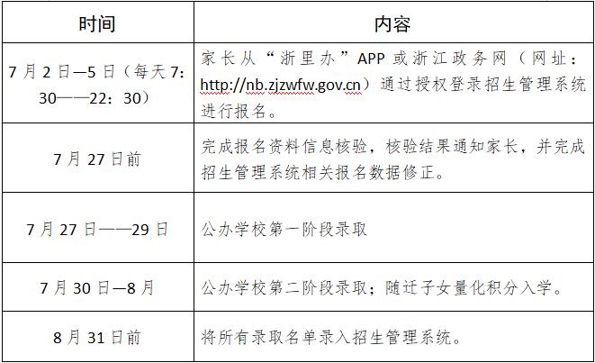 报名办法与去年一样实行网上报名。符合入学条件、要求在我县义务教育阶段学校就读的适龄儿童少年,由其监护人在县教育局规定的报名时间内登录浙江政务服务网“宁波市幼儿园入园、义务教育入学报名招生系统”(以下简称“招生管理系统”,网址:http://nb.zjzwfw.gov.cn),或利用手机登录“浙里办”APP,检索“象山县|义务教育阶段学校学生入学”,进行入学报名。