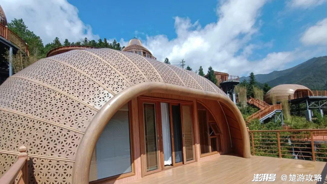 内冲瑶族村独特的鸟巢树屋,悬挑于山腰之上,木质栈道串联起了每处独栋民宿之间。建筑外观采用了仿生设计,设计感极强。独特的外观设计,赋予了建筑一种生命生长的震撼力,5种房型,落错有致,每一个房间都有独立露台,视野开阔,全落地窗森林360°观景,还有电动窗帘等智能家居,白天观晨雾,晚上看星星。还有猕猴桃采摘园和玫瑰花园,沿着步道走到水库边就能看到山间的宽阔水域,来这里更适合避世疗愈,发呆放松。