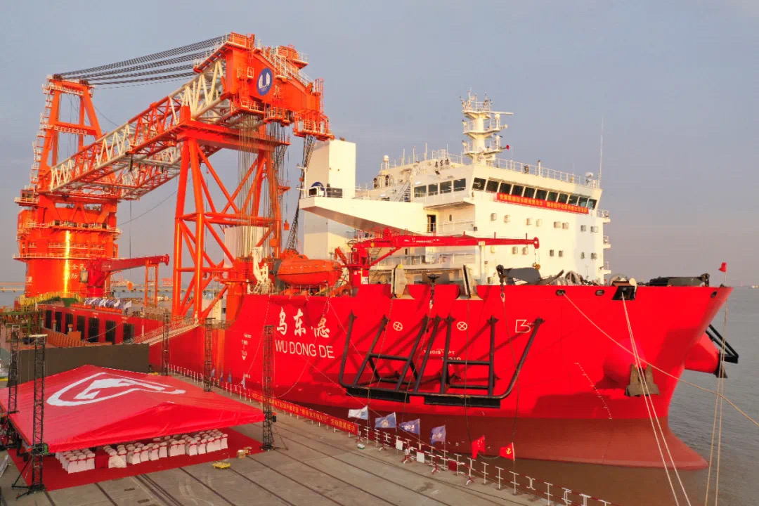 6月29日,我国海上风电事业发展再添利器,由三峡集团牵头,联合招商局集团、中船集团、中国交建共同打造的国内首艘“运输+起重”一体化深远海海上风电施工船——“乌东德”号在江苏南通正式交付投运。