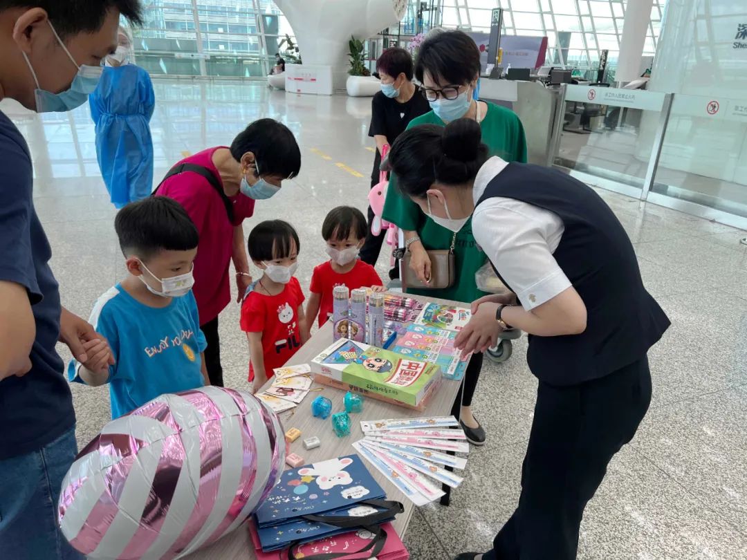 暑运期间,团体、儿童等旅客人数明显上升,南航广州枢纽在值机环节开设团队旅客保障专柜,提前一天预接团体旅客登机牌,为不同航线制作“各地健康码”扫描图,专人协助团体旅客进行防疫检查及自助托运办理,缩短现场办理时间。南航客舱系统为旅客提供亲和精细全流程空中服务,通过“木棉童飞卡”“木棉心意卡”记录无陪小旅客飞行服务信息、传递生日祝福,创造服务惊喜。