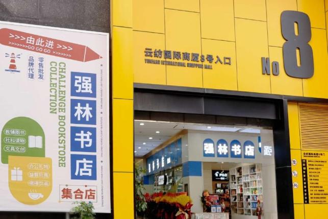 强林书店logo造型灵感来源于灯塔,和书籍融合,旨在能够指引陪伴一代又一代人的成长。主题颜色为蓝色,既是一直以来的品牌色,也是因为这是最能代表昆明美的颜色。强林书店集合店秉承“Challenge yourself, light your future”(挑战自己,照亮未来)的理念,打造实体书店+精品文具+文创产品+咖啡文化(待引入)的综合性集成店。