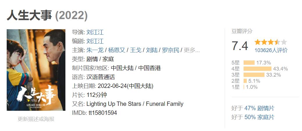 作为国内少见的殡葬主题电影,它用冷门话题呈现了温情人间与真实人性。即便有人打2星,也不妨碍我喜欢影片里的场景。