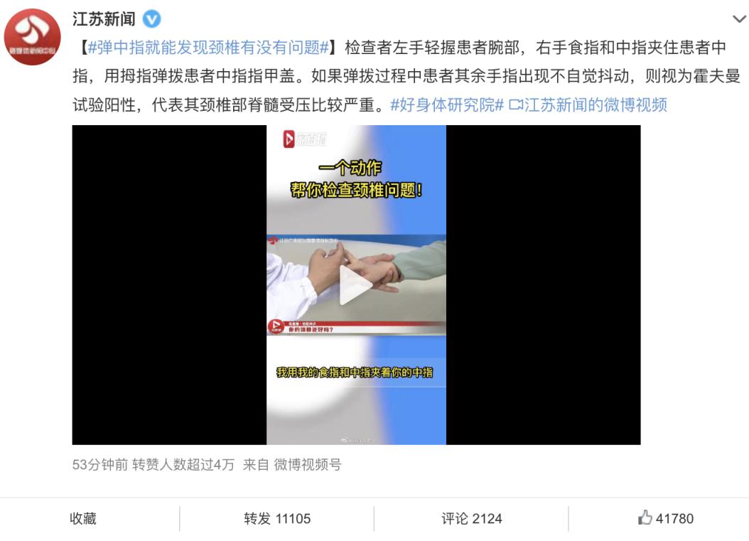 日前,一个「弹中指就能发现颈椎有没有问题」的话题登上了热搜。