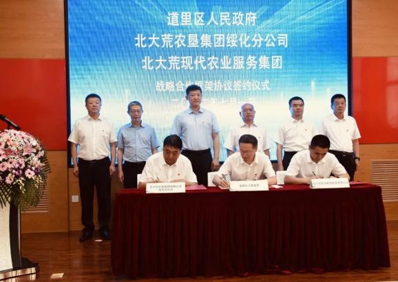 7月1日,道里区人民政府、北大荒农业服务集团有限公司、北大荒农垦集团有限公司绥化分公司,就道里区与北大荒集团开展垦区合作,签订了战略合作框架协议。双方将在农业标准化提升、农业社会化服务等领域开展合作。