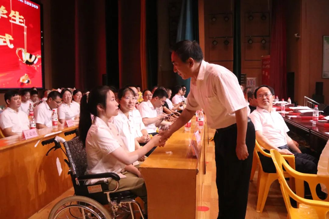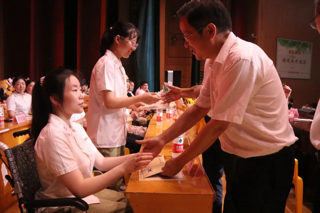 学校党委书记、校务会主任唐会荣为李好同学颁发毕业纪念章。