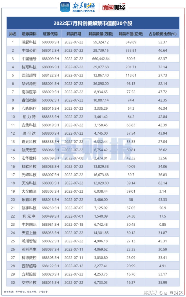 A股7月逾4000亿解禁,科创板迎三周年解禁潮